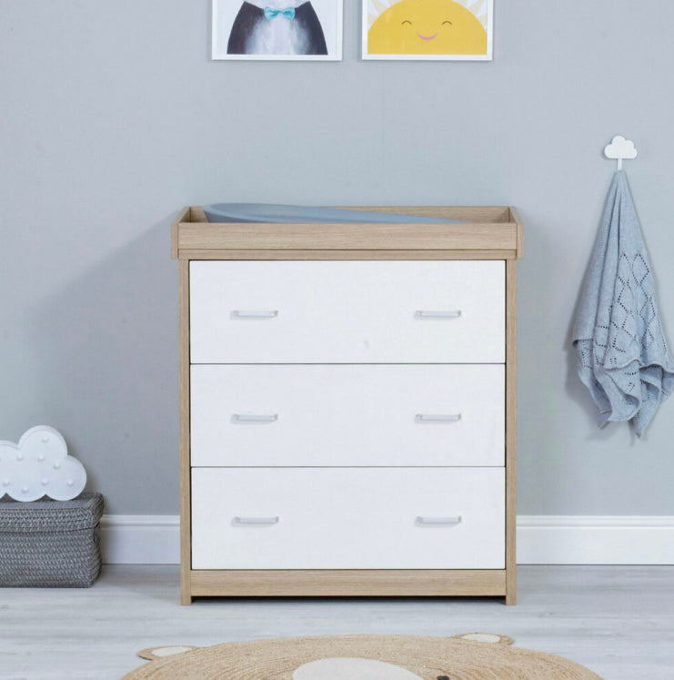 The changing section attached to the top of the chest unit, leaving no unnecessary fixings showing, it easily accommodates a changing mat up to 75 x 45 cm and is set at the perfect height for parents. When the changing area is no longer needed the changing section can be easily removed and creates a more traditional chest of drawers.
