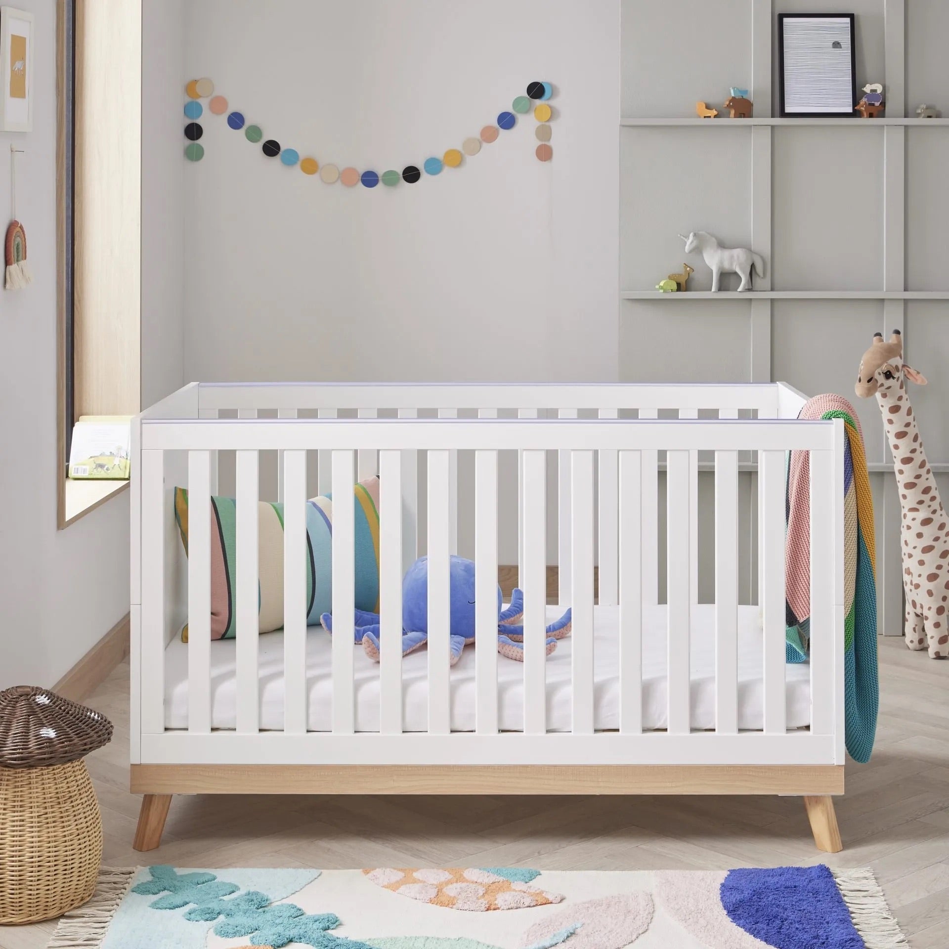 Once your little one is ready, the Mona Cot Bed easily converts into a stylish toddler bed. Crafted from high-quality materials, this cot bed is built to last.
