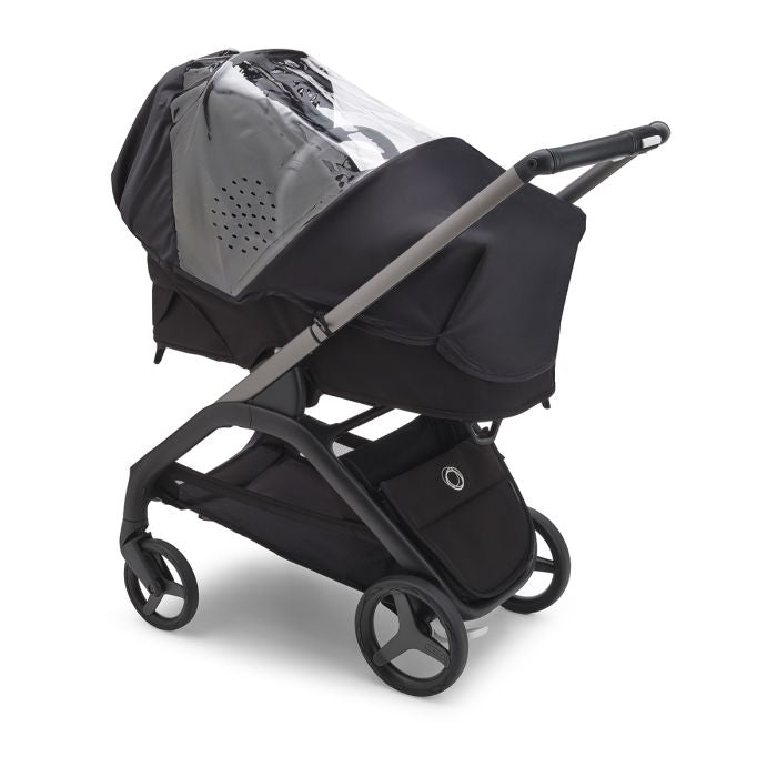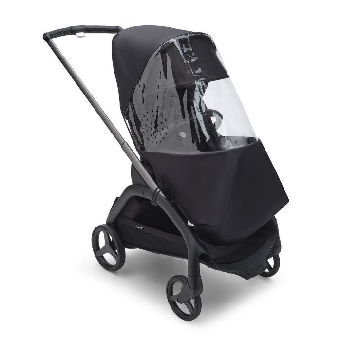Always be prepared for unexpected weather changes with the Bugaboo Dragonfly rain cover. It's quick and easy to install, and can be stored compactly to take it with you everywhere.