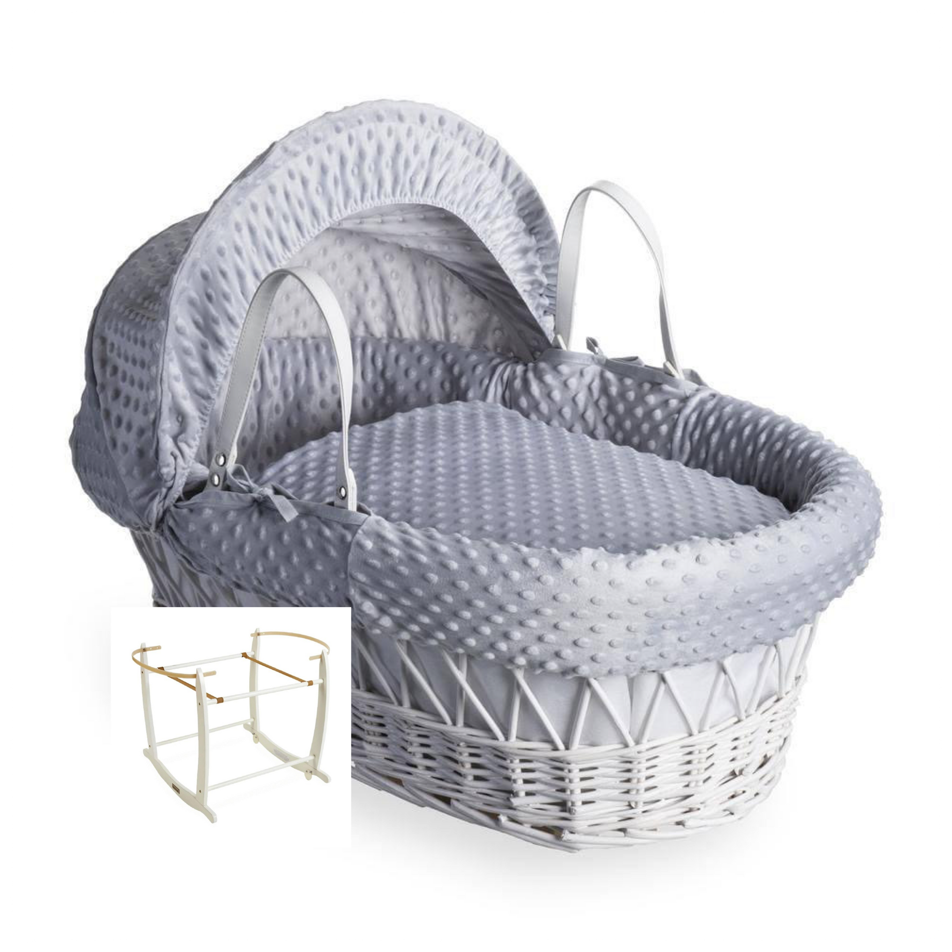 Clair De Lune Dimple Grey Wicker Moses Basket & Stand-White