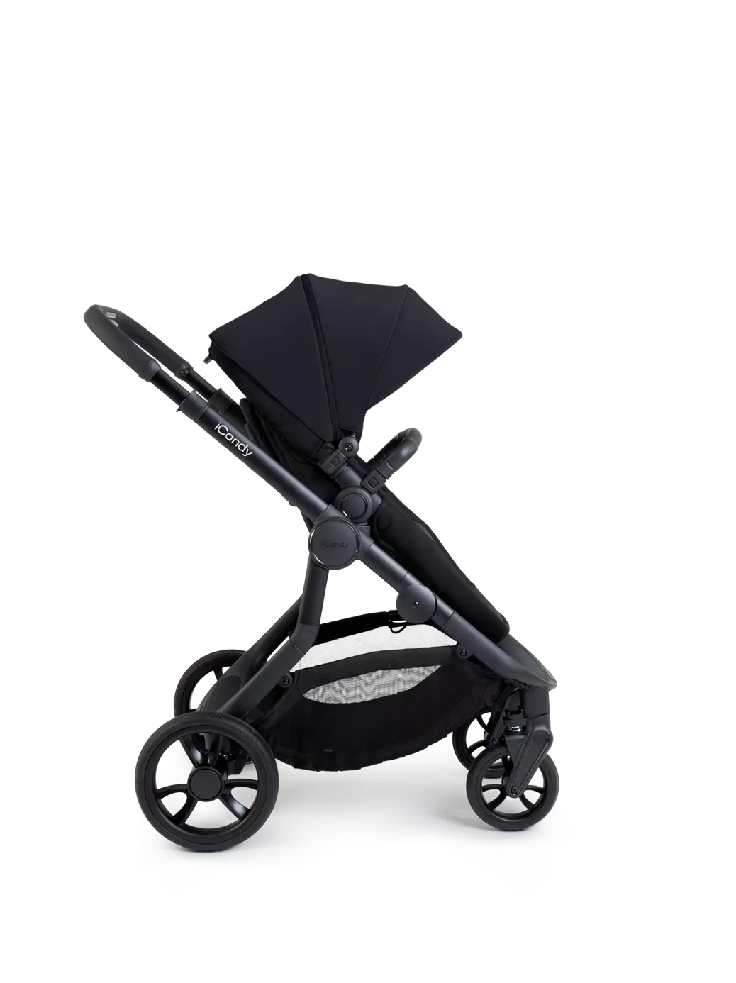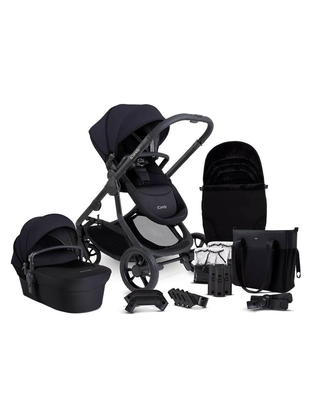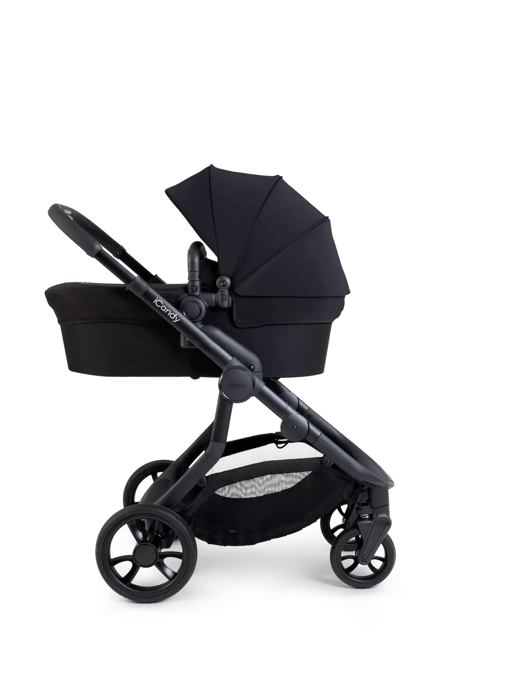 iCandy Orange 4 Pushchair, Carrycot and Accessories Complete Bundle Jet Black Edition