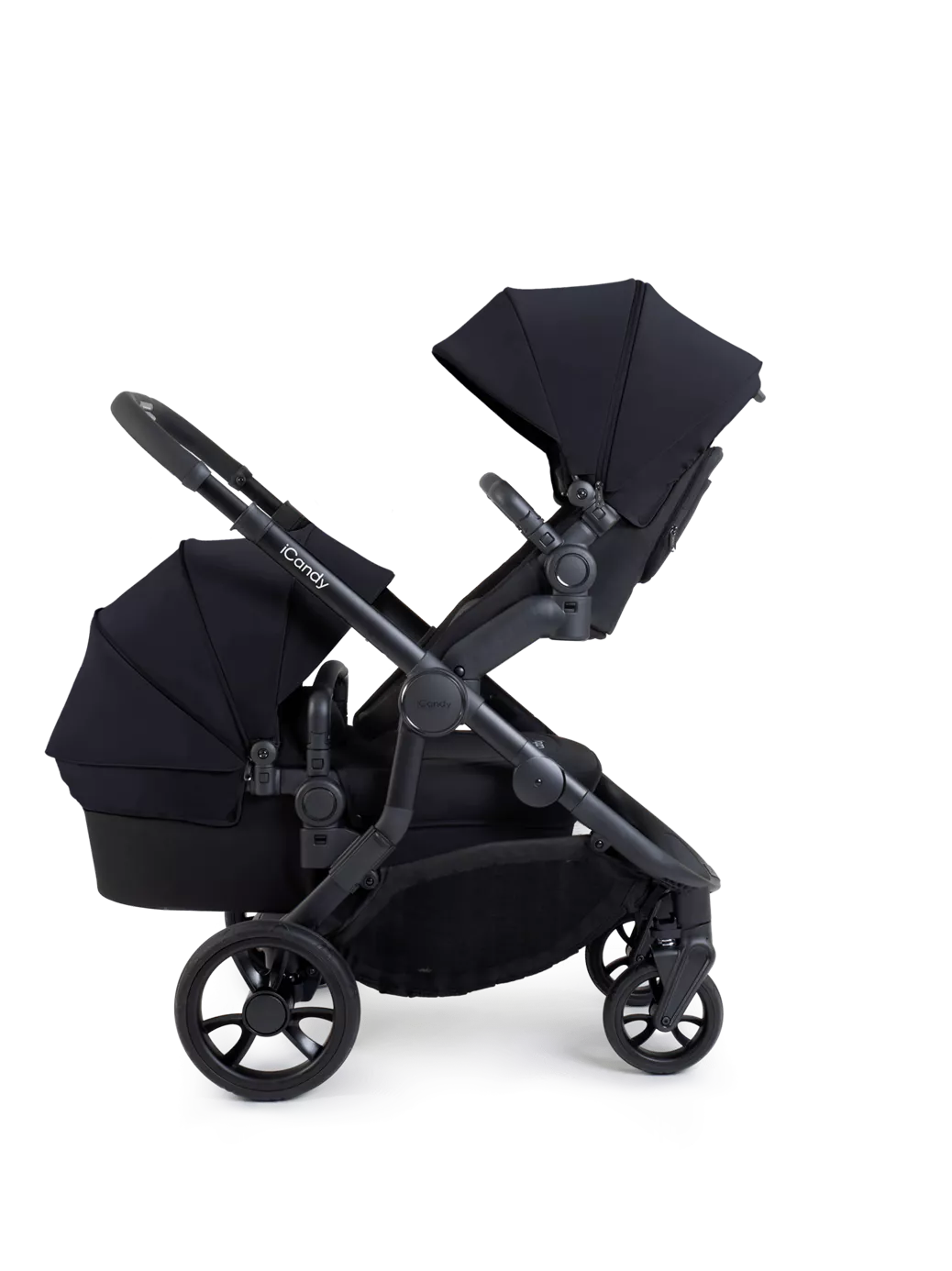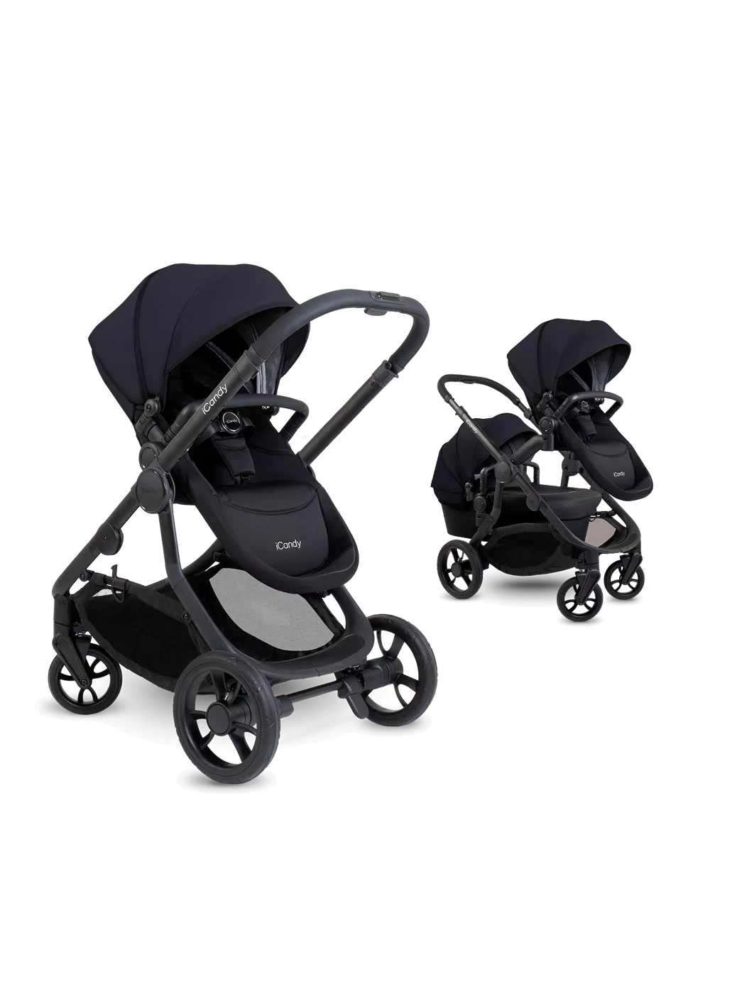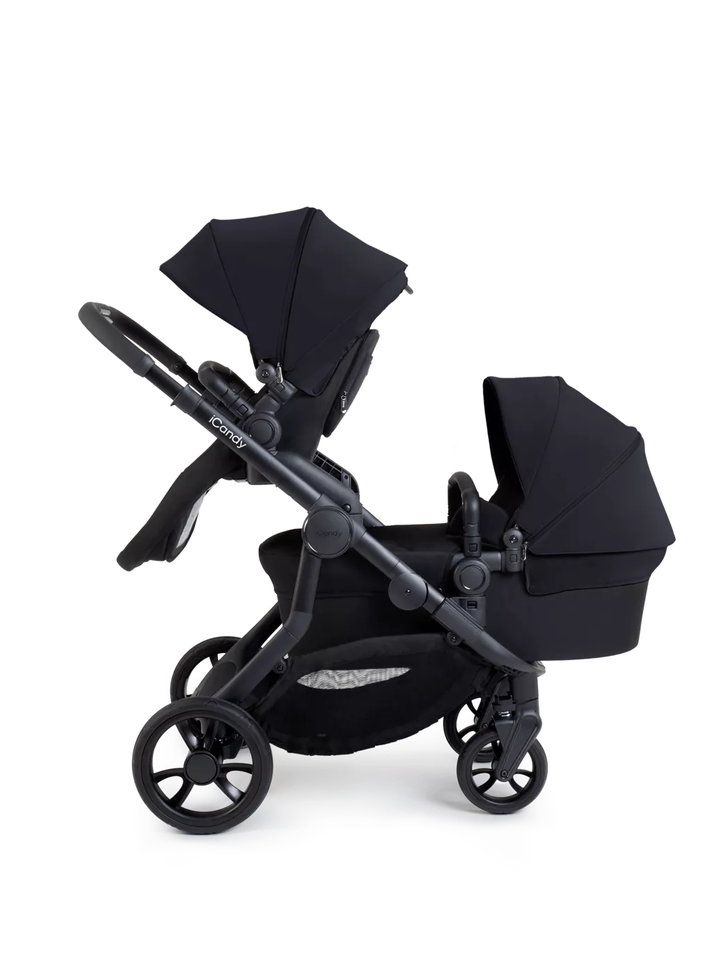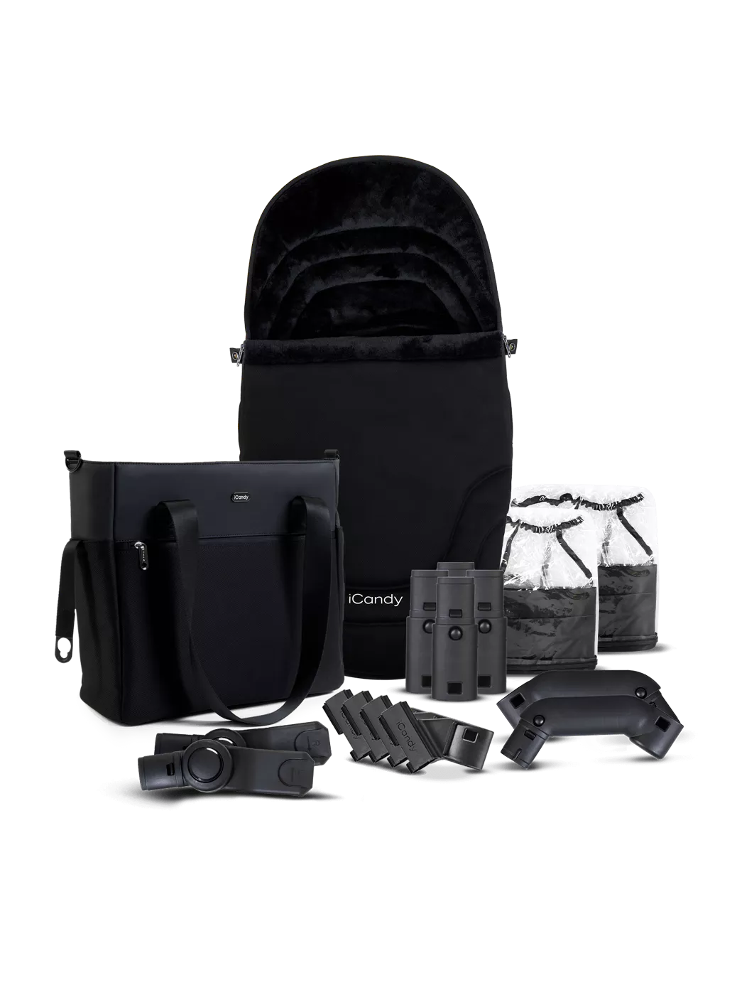 iCandy Orange 4 Pushchair, Carrycot and Accessories Complete Bundle Jet Black Edition