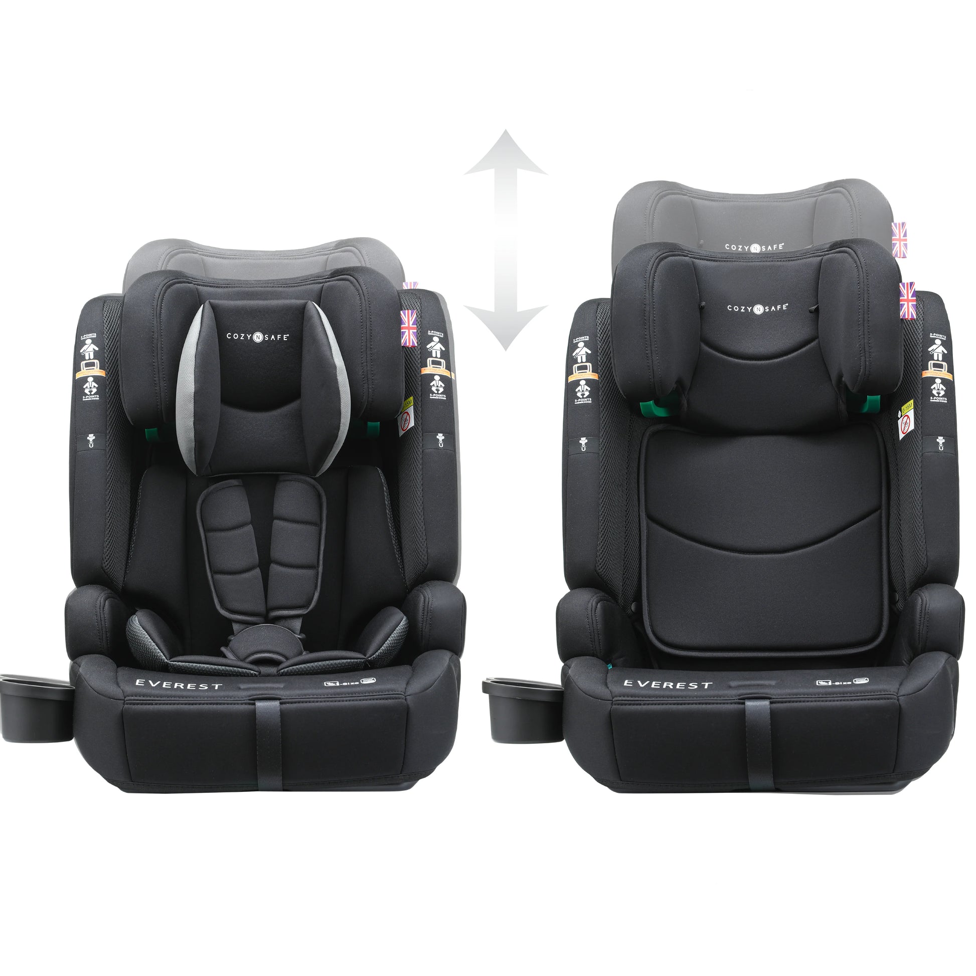 The Cozy N Safe Everest i-Size car seat is as strong and sturdy as the mountain it’s named after. The car seat is suitable for children from 76cm to 150cm tall (approx. 15months to 12 years old). The Everest i-Size seat is fitted into most vehicles using the ISOFix and Top Tether system when using the 5 point harness system. Then when your not so little one outgrows the harness simply hide it and the car seat transforms into a high back booster seat that can then be installed using the optional ISOFix and/or the vehicles’ 3 point seat belt.