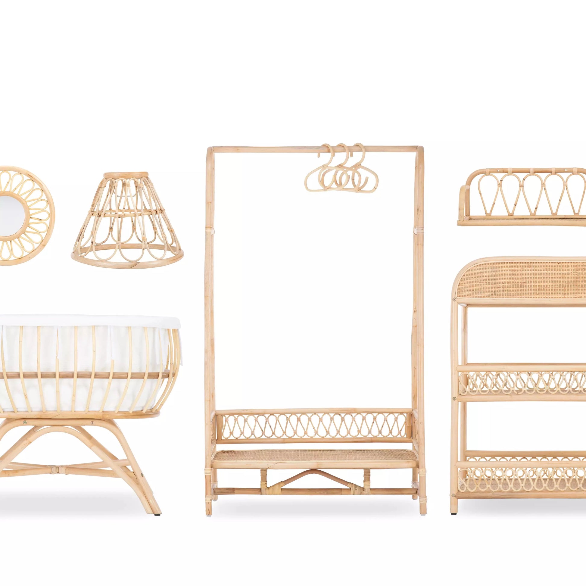 The Aria Rattan Nursery Furniture Set takes inspiration from the modern, boho-chic trend and combines it with the traditional techniques used to create rattan furniture. The Aria nursery set is mostly hand-made from rattan, a natural, sustainable material guaranteed to bring warmth and texture to your nursery.