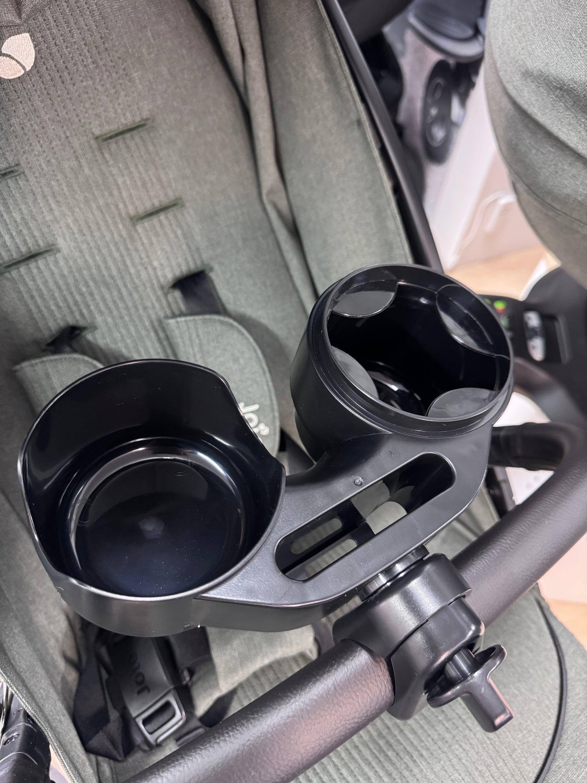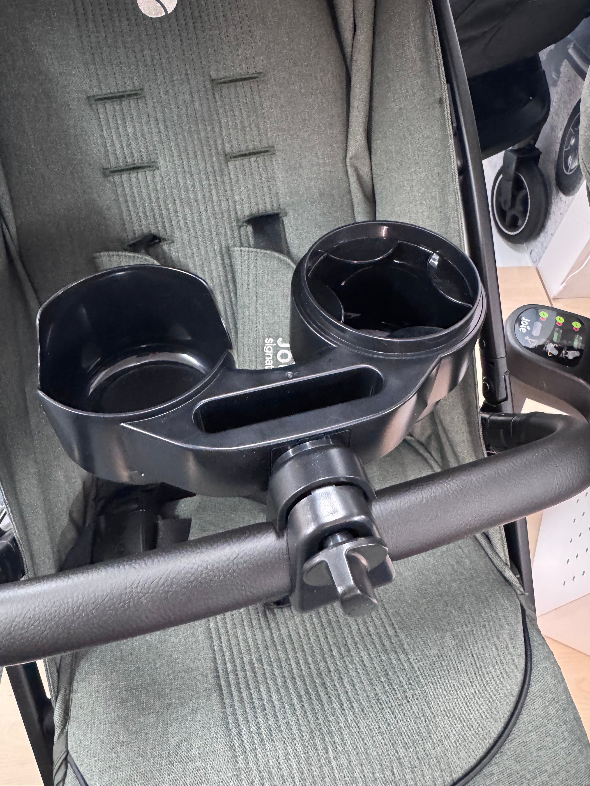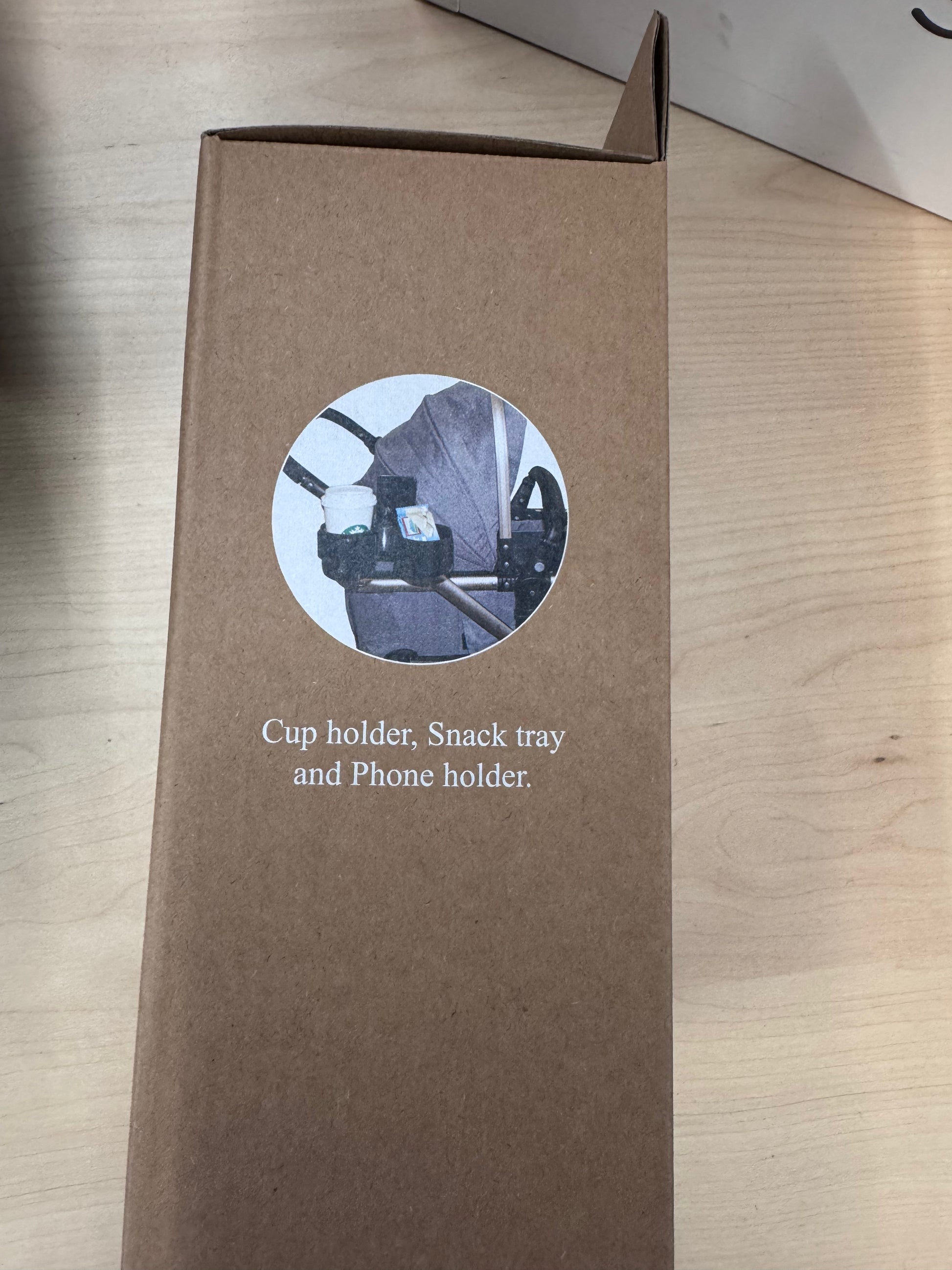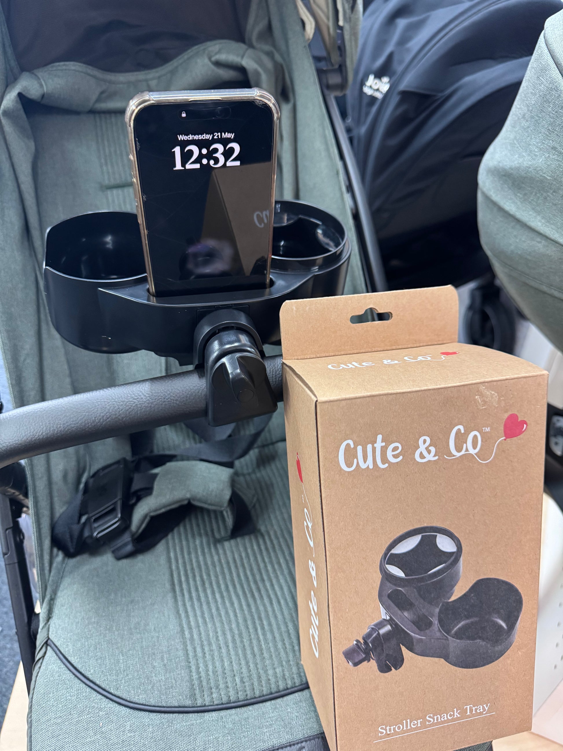 Cute & Co stroller snack tray. Fits most makes and models . Cup holder, snack tray and phone holder in one. Easy to adjust