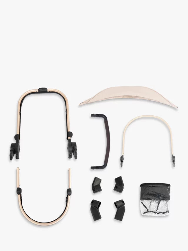 The converter kit transforms your single Peach pushchair into a double pushchair.
