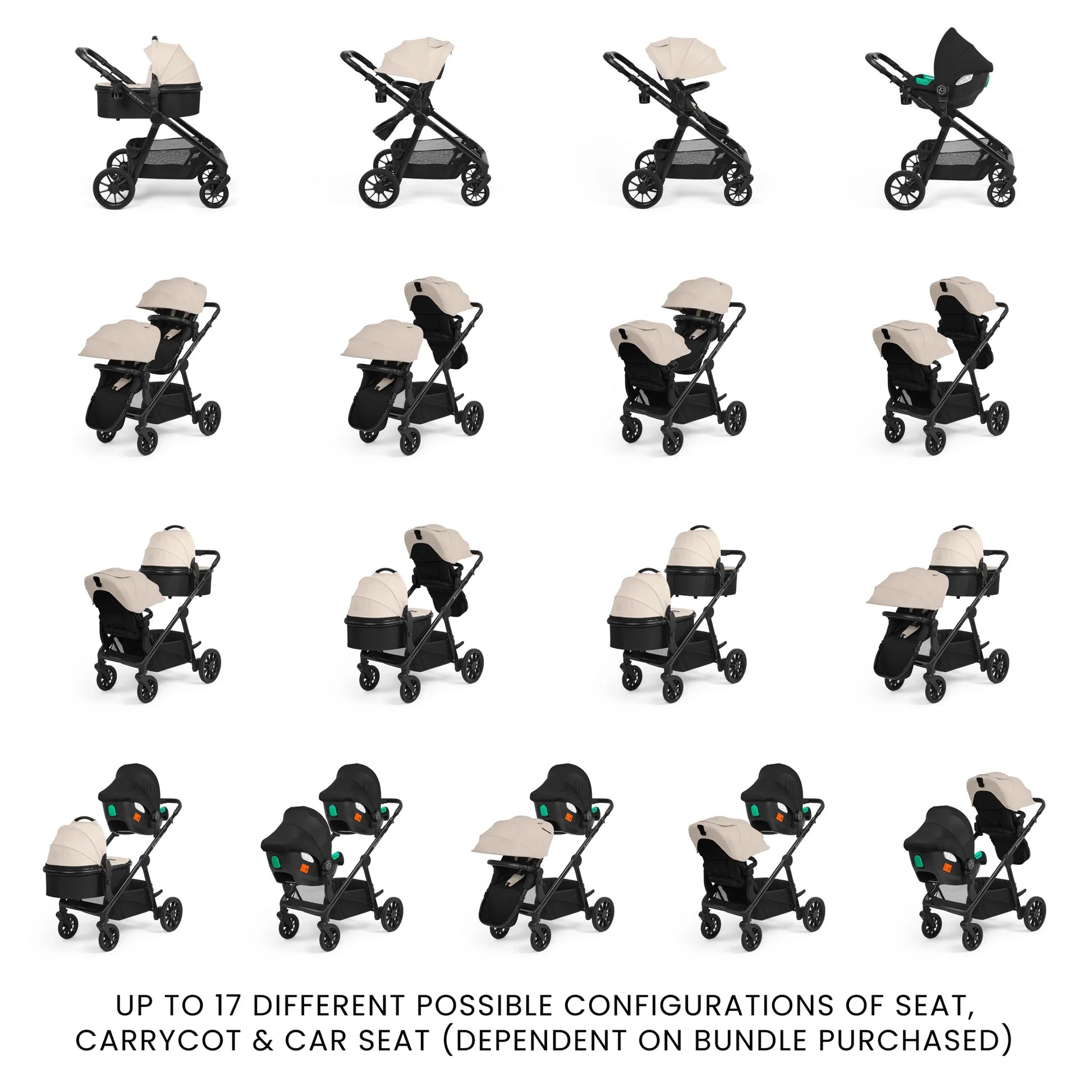 - Up to 17 different possible configurations of seat, carrycot and car seat (dependent on bundle purchased)