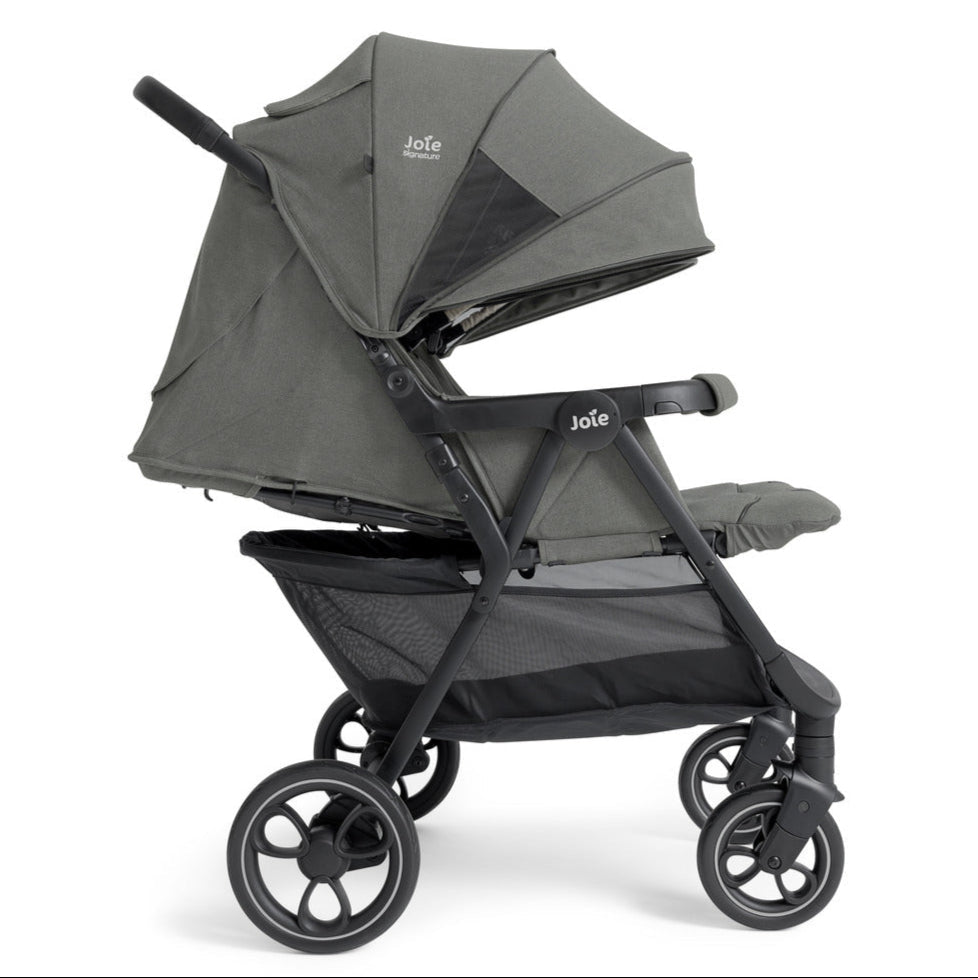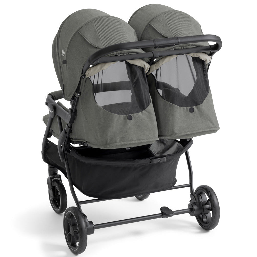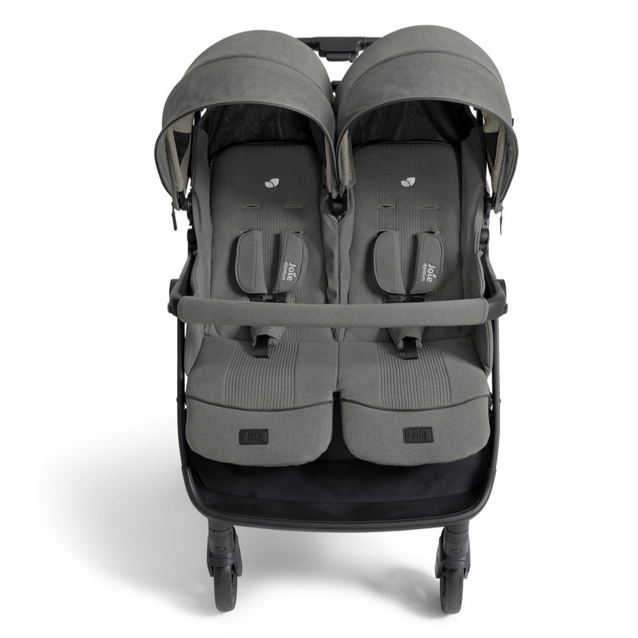 The Joie Signature Estrella Lightweight Twin Stroller Eclipse is suitable from birth to 22kg (approx. 4 years) per seat. Ensuring a cosy and ergonomic environment for both newborns and toddlers. With all-wheel suspension for a smooth ride over rough terrain, UPF 50+ and water-repellent canopies for sun and weather protection, and a quick, one-hand fold for easy storage