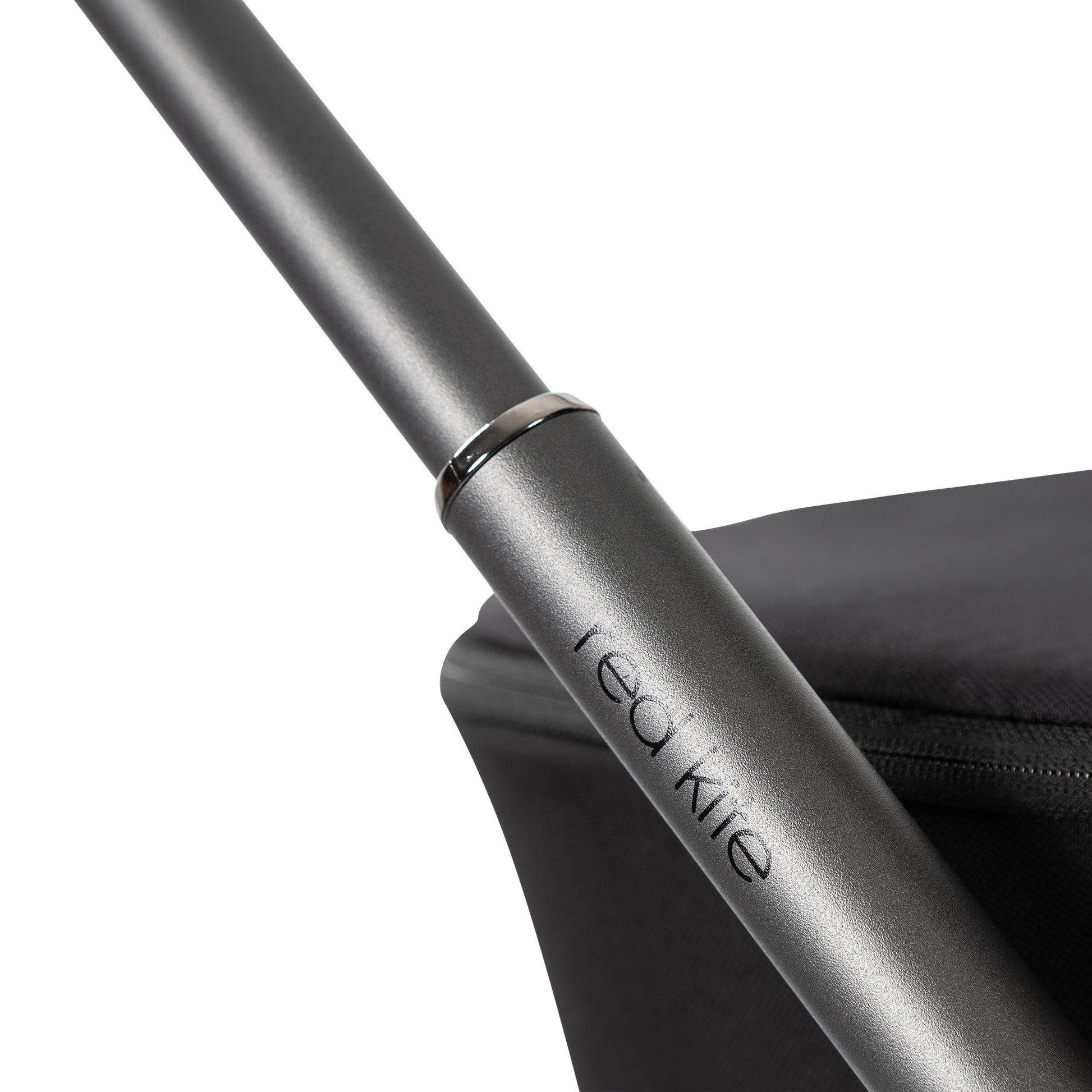 Thoughtful details include a multi-position one-hand recline, extendable canopy with viewing window and sun visor, luxurious soft-touch fabrics, and leather-effect handle and bumper bar for a refined finish.