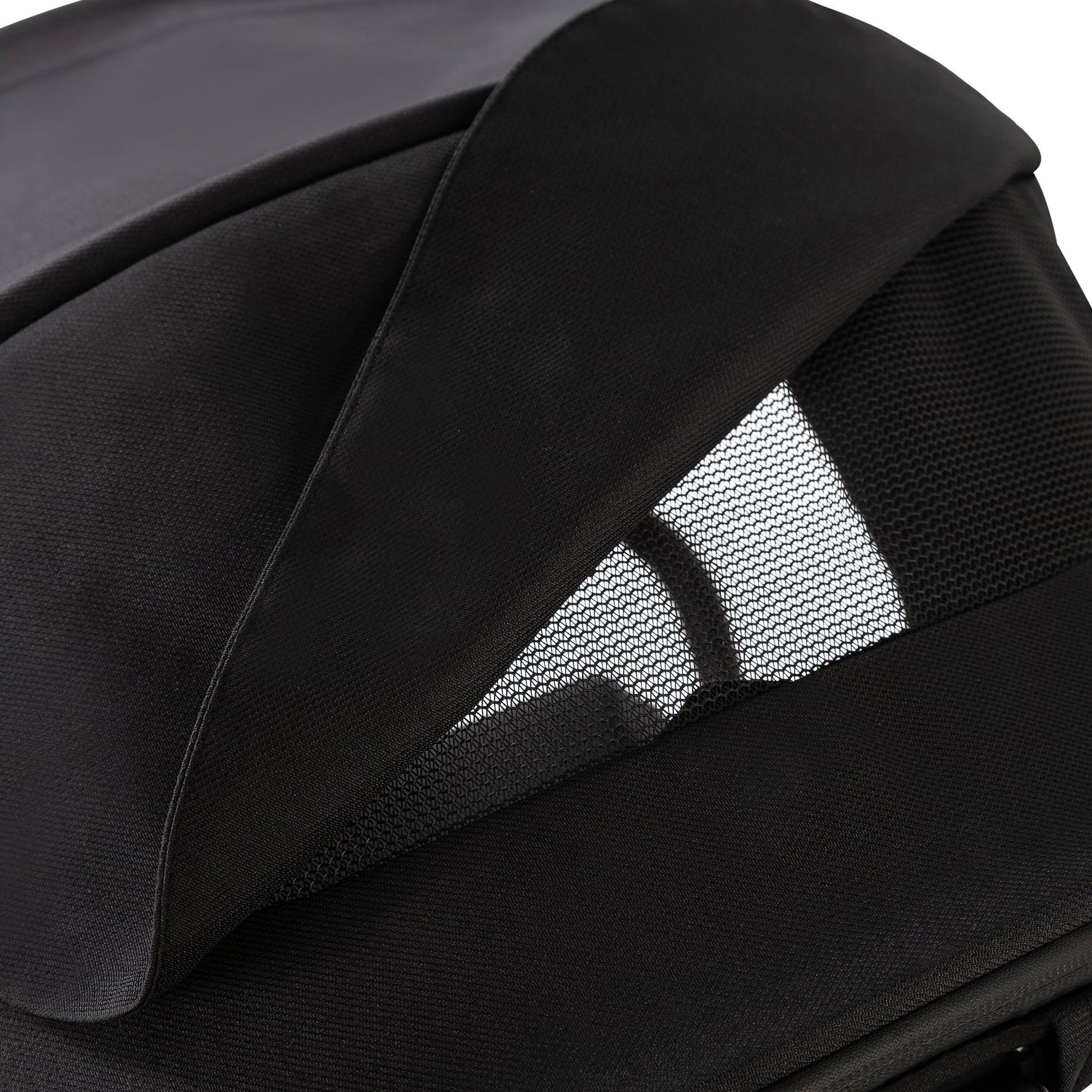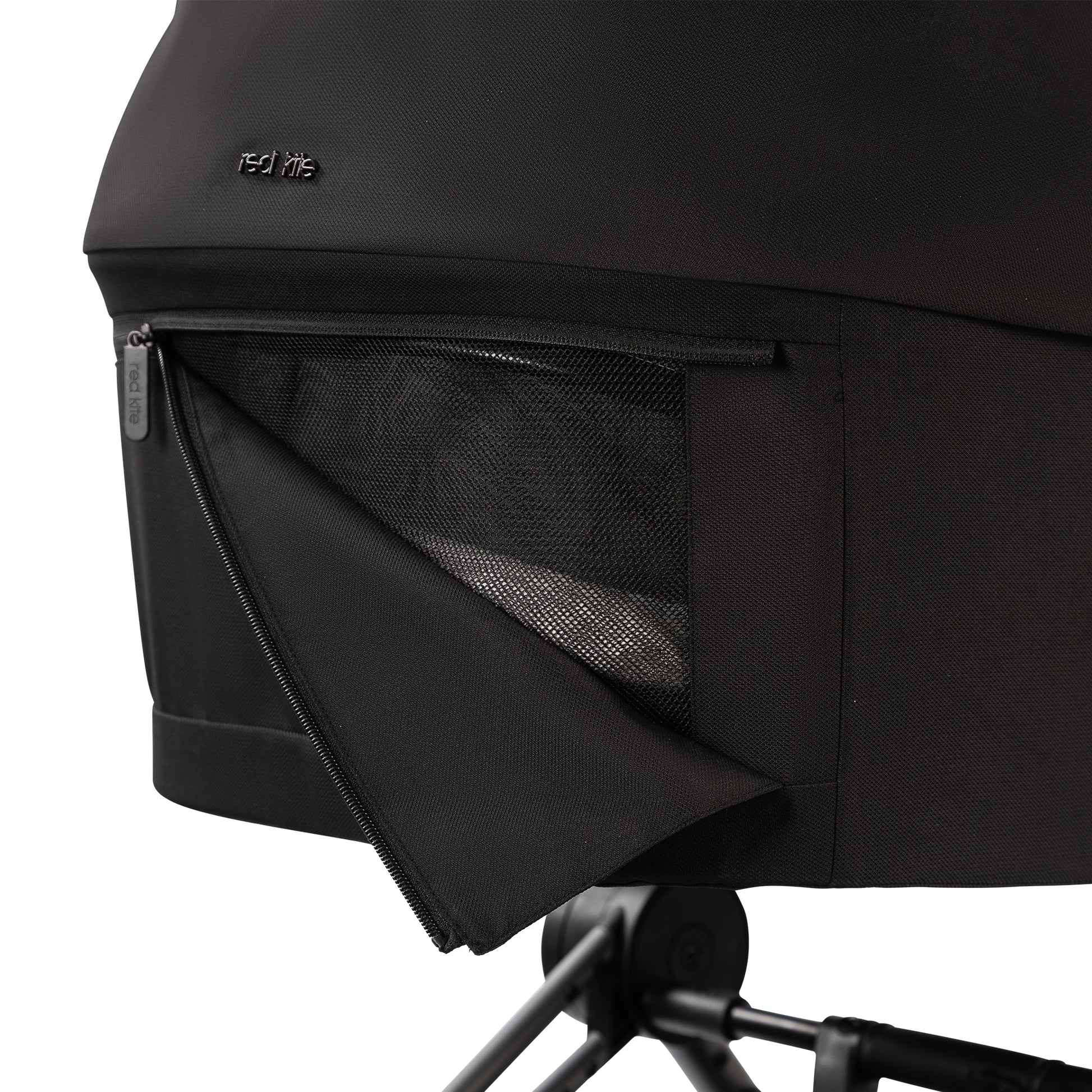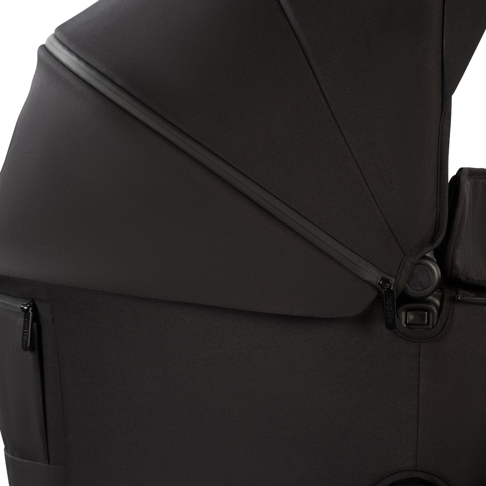 - Fully extendable canopies on both stroller and carrycot with concealed zips, a viewing window and retractable sun visor