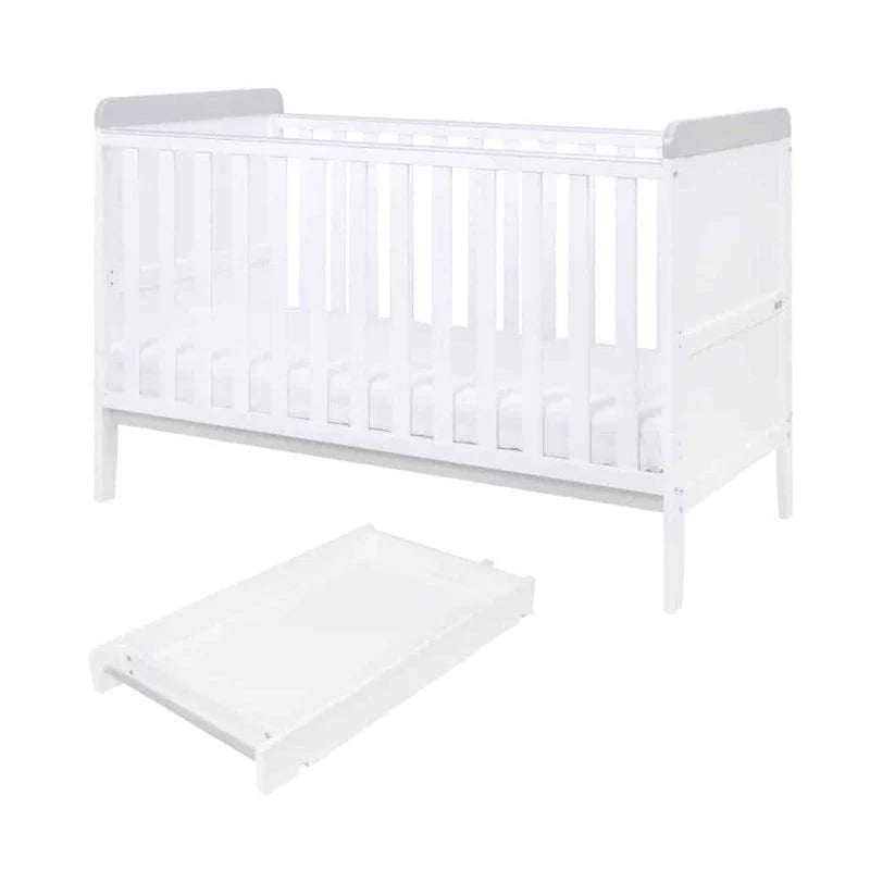 Tutti Bambini Rio Cot Bed, Changer and Mattress – White/Dove Grey