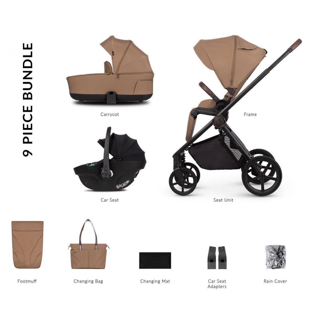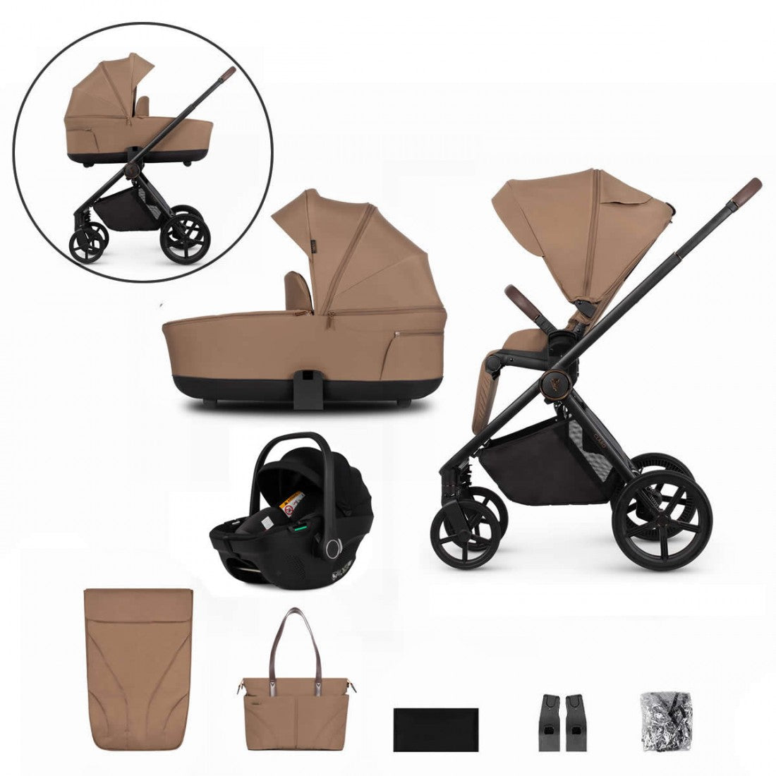 Venicci Claro 3 in 1 with Tiago 360 Car Seat Travel System Bundle, Caramel