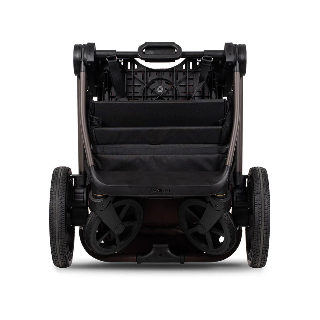 With the Venicci Upline 2, folding the pram becomes a pleasure. A quick motion of the hand is all it takes to fold the frame and get it ready for transport. Thanks to the special strap mounted on the chassis, you can conveniently carry the pram over your shoulder with ease. The chassis weighs only 5.9 kilograms and is made of lightweight yet durable aluminium, resistant to damage. You can easily fit it into the boot, even of the smallest car.