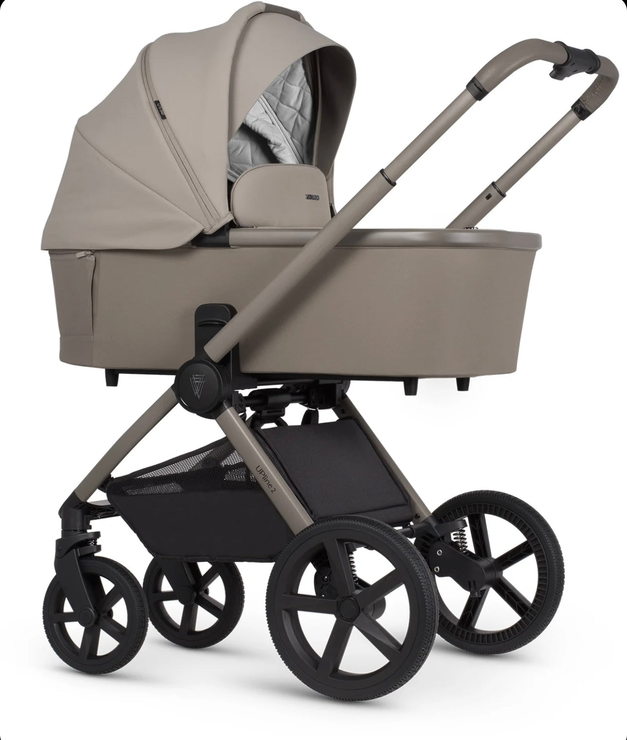 With the Venicci Upline 2, folding the pram becomes a pleasure. A quick motion of the hand is all it takes to fold the frame and get it ready for transport. Thanks to the special strap mounted on the chassis, you can conveniently carry the pram over your shoulder with ease. The chassis weighs only 5.9 kilograms and is made of lightweight yet durable aluminium, resistant to damage. You can easily fit it into the boot, even of the smallest car.