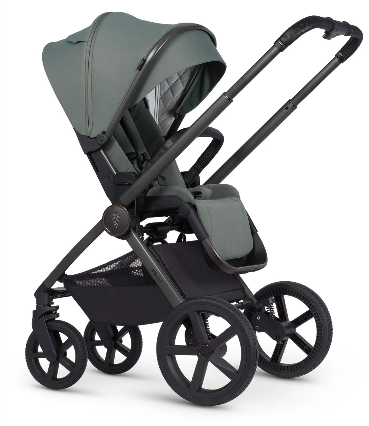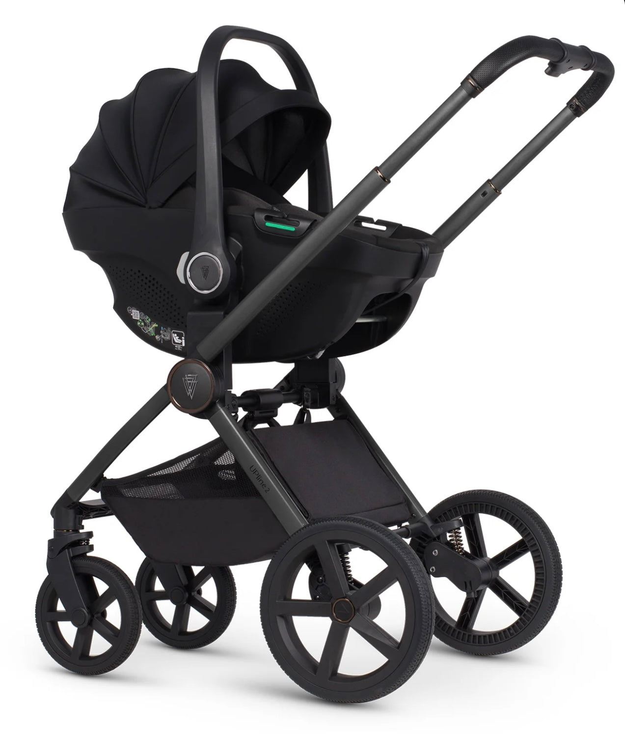 With the Venicci Upline 2, folding the pram becomes a pleasure. A quick motion of the hand is all it takes to fold the frame and get it ready for transport. Thanks to the special strap mounted on the chassis, you can conveniently carry the pram over your shoulder with ease. The chassis weighs only 5.9 kilograms and is made of lightweight yet durable aluminium, resistant to damage. You can easily fit it into the boot, even of the smallest car.