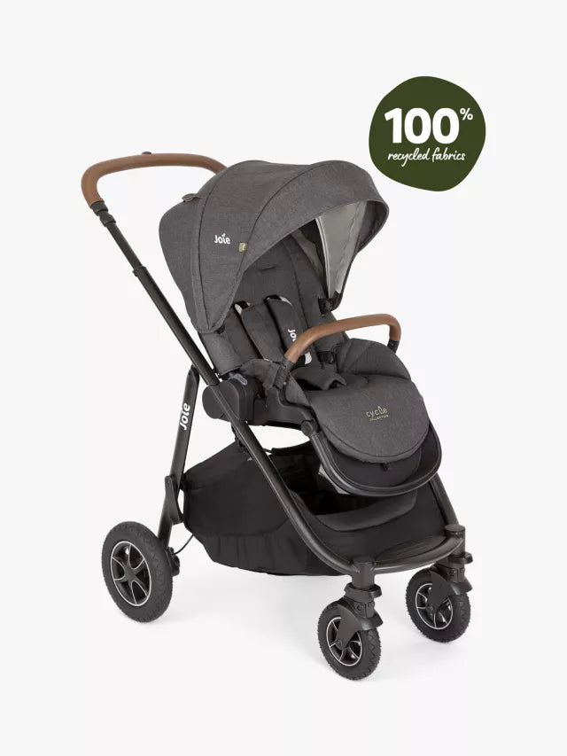 Help save the environment on the go all while keeping your little one safe with this multi-mode pram trio. 153 recycled bottles combined in the fabrics of a carry cot, infant carrier and forward or rearward facing seat, you can make your journeys eco-friendly.